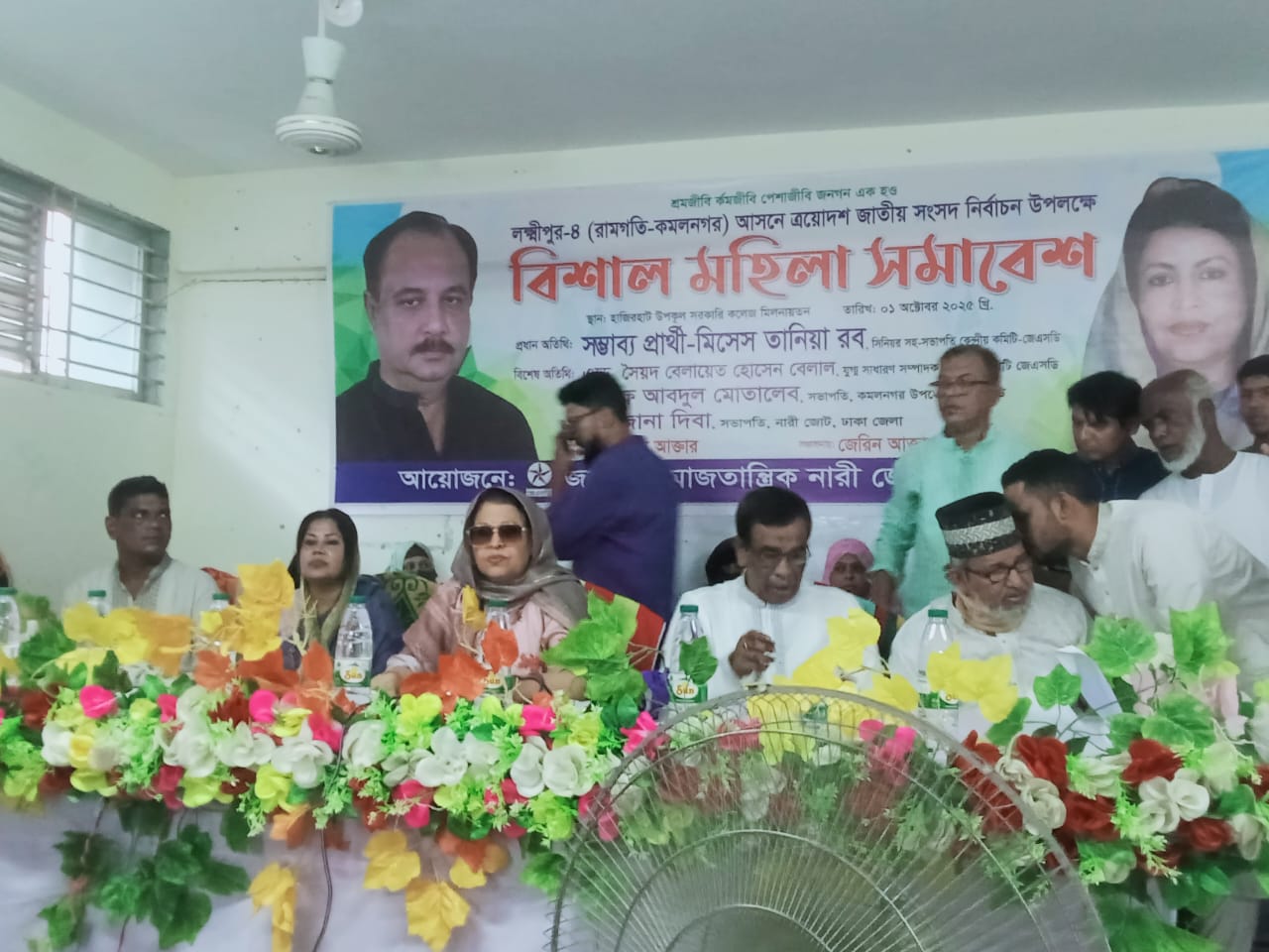 লক্ষ্মীপুরের কমলনগরে জাতীয় সমাজতান্ত্রিক দল (জেএসডি) মহিলা সমাবেশ অনুুষ্ঠিত হয়েছে। বুধবার হাজিরহাট উপকূল সরকারী কলেজ মিলনায়তনে এসভা অনুষ্ঠিত হয়েছে। সমাবেশে প্রধান অতিনিথি হিসেবে উপস্থিত ছিলেন জাতীয় সমাজতান্ত্রিক দল (জেএসডির) কেন্দ্রীয় সহসভাপতি ও আ স ম আবদুর এর সহধর্মীনি মিসেস তানিয়া রব। বিশেষ অতিথি হিসেবে উপস্থিত ছিলেন জেএসডির কেন্দ্রীয় কমিটির যুগ্ম সাধারণ সম্পাদক এড. সৈয়দ বেলায়েত হোসেন বেলাল ও কেন্দ্রীয় কমিটির সদস্য আবদুল বাতেন বিপ্লব, ঢাকা জেলা নারী জোটের সভাপতি ফারজানা আক্তার দিবা। অনুষ্ঠানের সভাপতিত্ব করেন কমলনগর উপজেলা জেএসডির সভাপতি অধ্যক্ষ আবদুল মোতালেব। অনুষ্ঠানে অন্যান্যের মধ্যে বক্তব্য রাখেন, কমলনগর উপজেলা যুব পরিষদের সভাপতি মাহমুদুর রহমান বেলাল, যুগ্মআহ্বায়ক এম এ এহসান রিয়াজ, মোখলেছুর রহমান ধনু ও যুগ্ম আহ্বায়ক মো. আক্তার হোসেন প্রমুখ। কবির হোসেন রাকিব সাংবাদিক